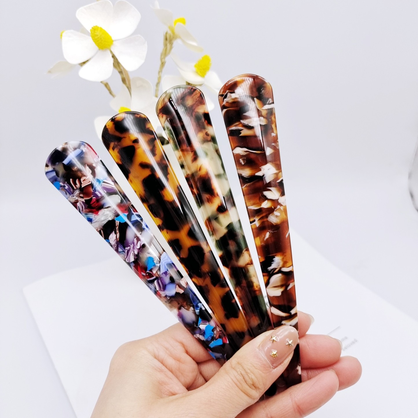 Large Horn Clip Acetate Material [Floral Color]