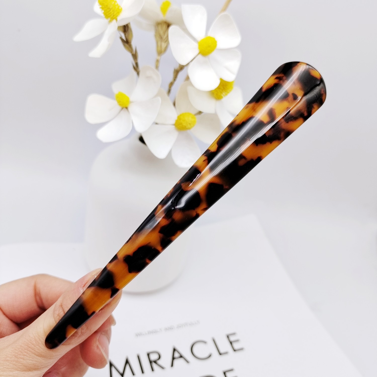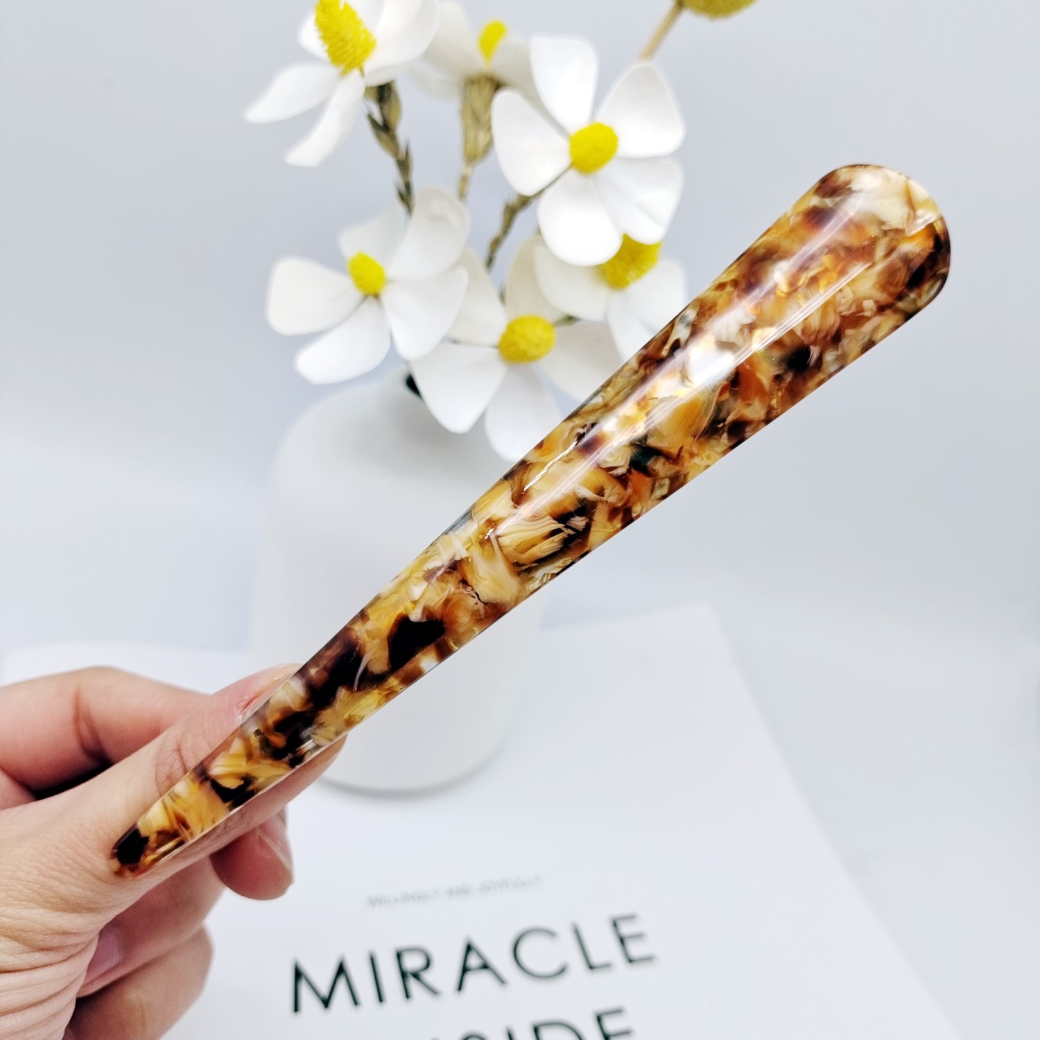 Large Horn Clip Acetate Material [White Jade Coffee]