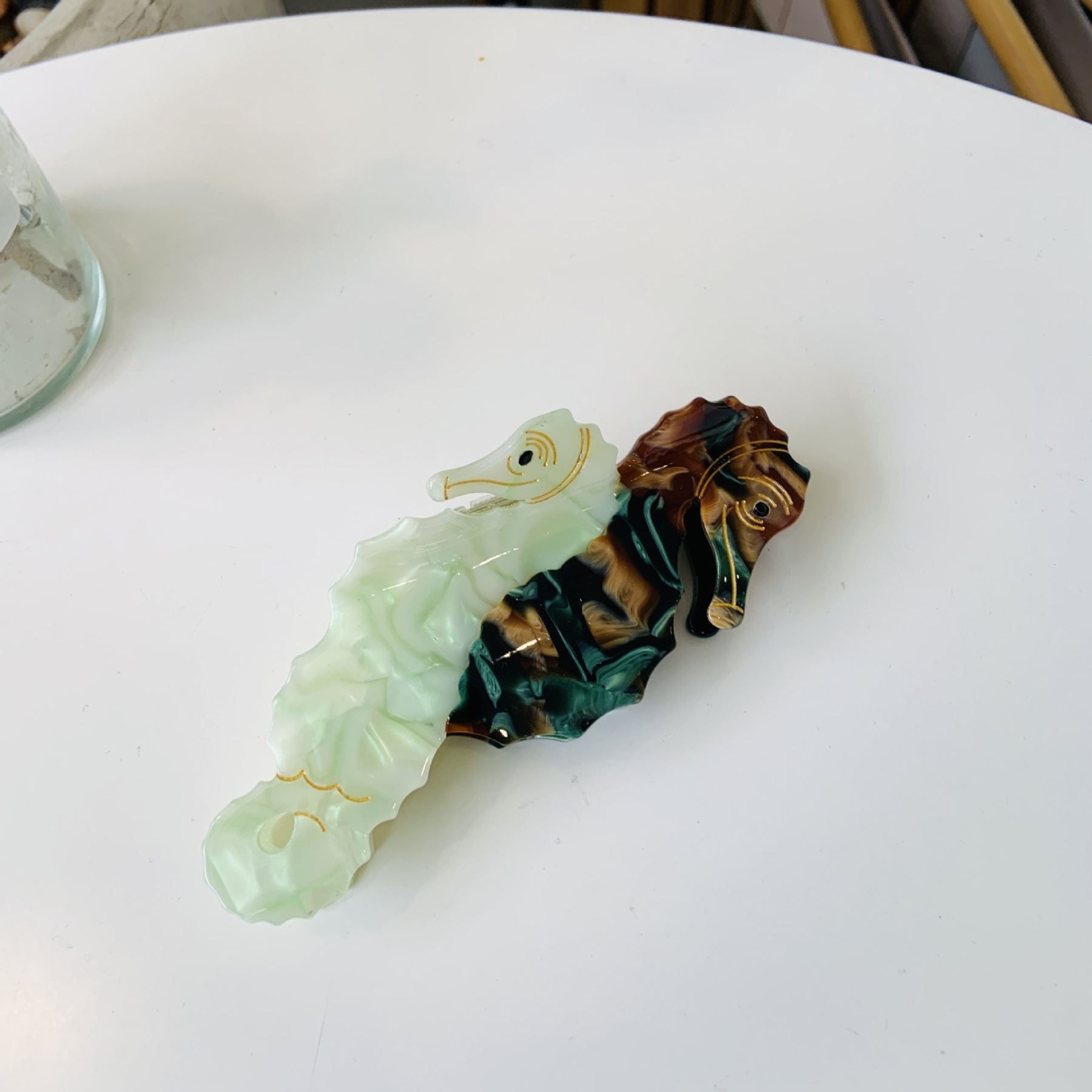 Brown and green two-color seahorse (about 9cm)