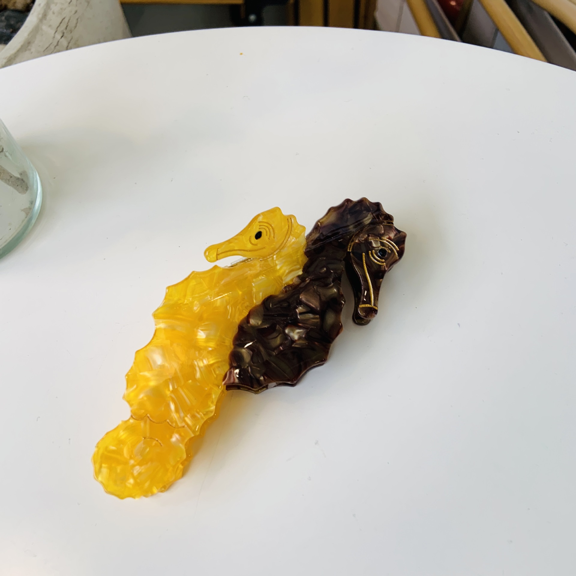 Black and yellow two-tone seahorse (about 9cm)