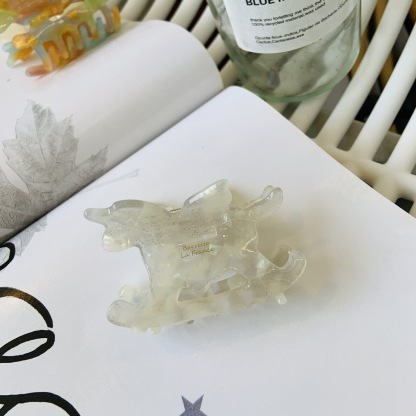 White Colorful - Wooden Horse Claw Clip (about 6.3cm)