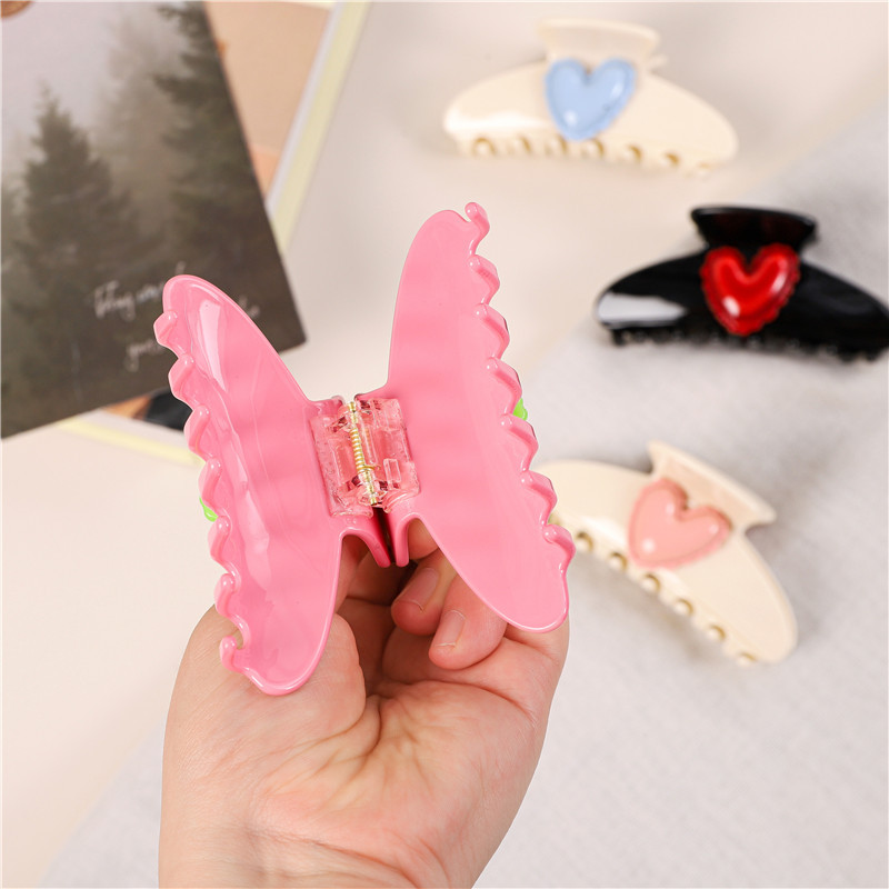 Pink-Green Heart Thickened Claw Clip 9.5cm