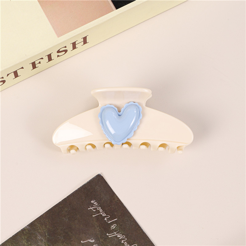 Beige-Blue Heart Thickened Claw Clip 9.5cm