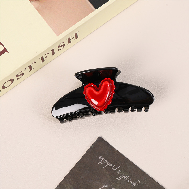 Black - Red Heart Thickened Claw Clip 9.5cm