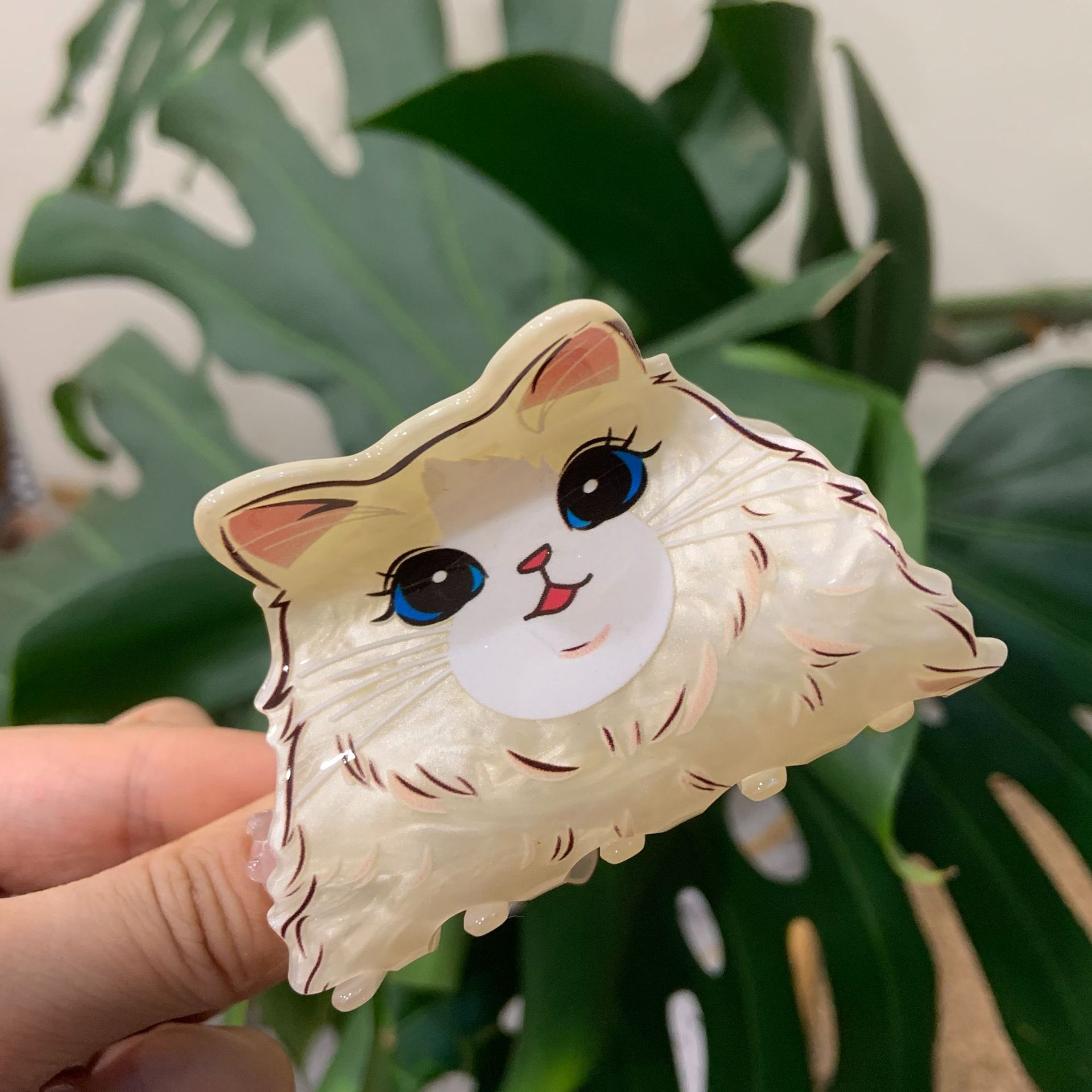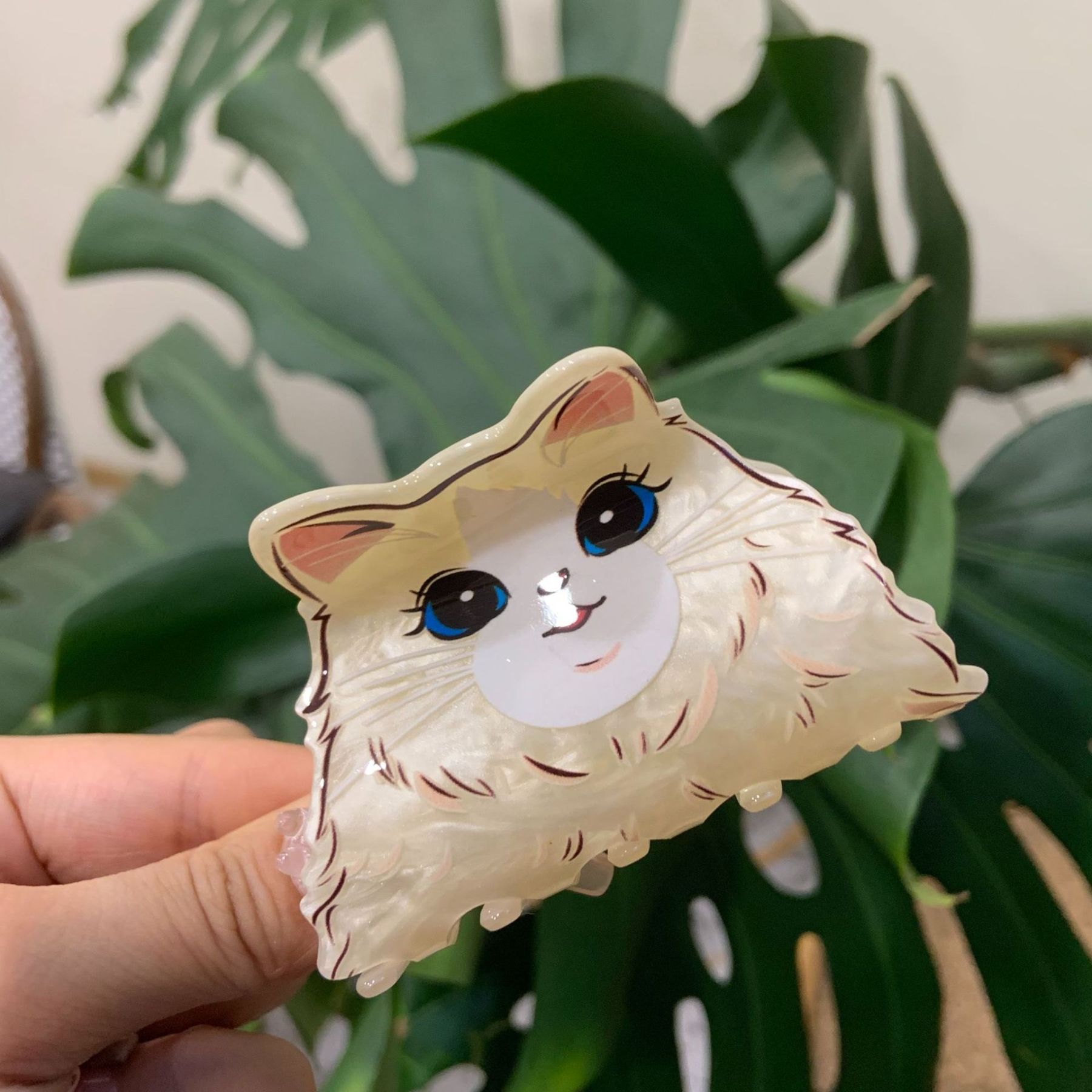 White Colorful-Big Eye Muppet Cat