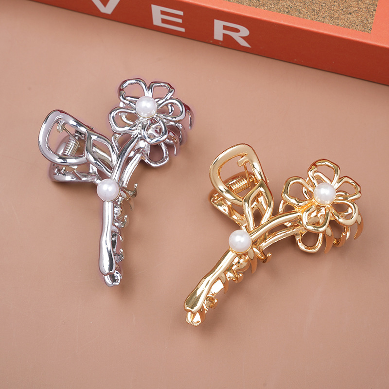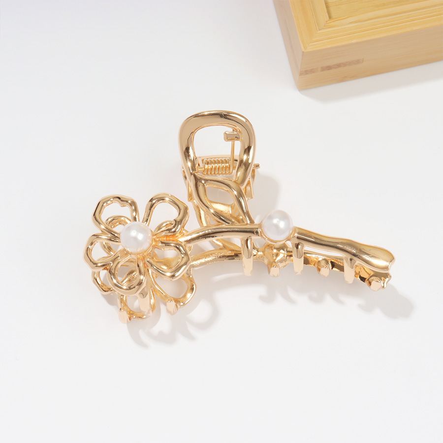 Golden Pearl Flower Hair Clip