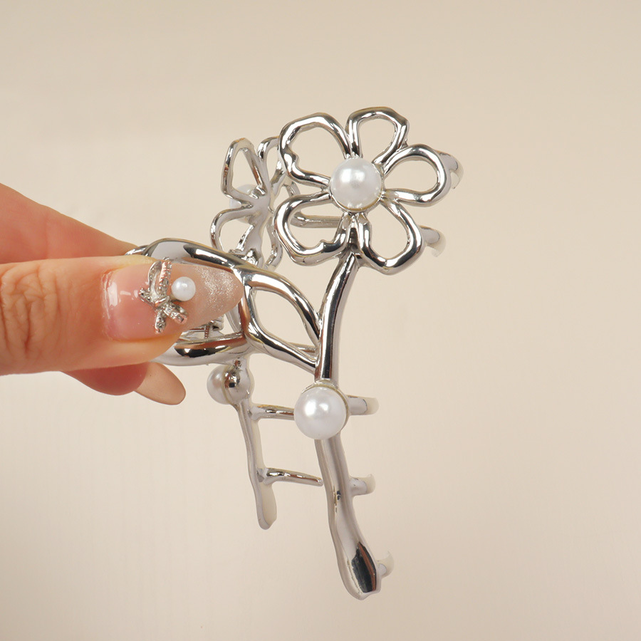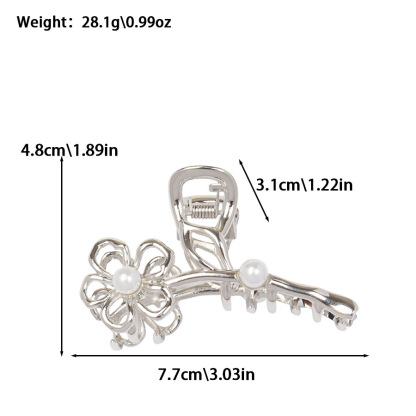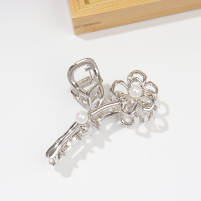 Silver Pearl Flower Hair Clip