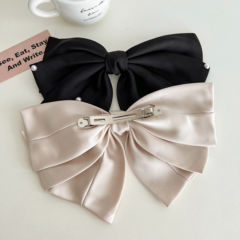 Black Oversized Pearl Bow Barrettes