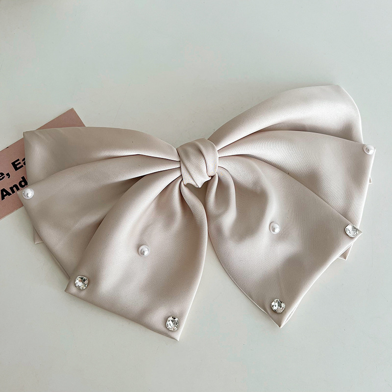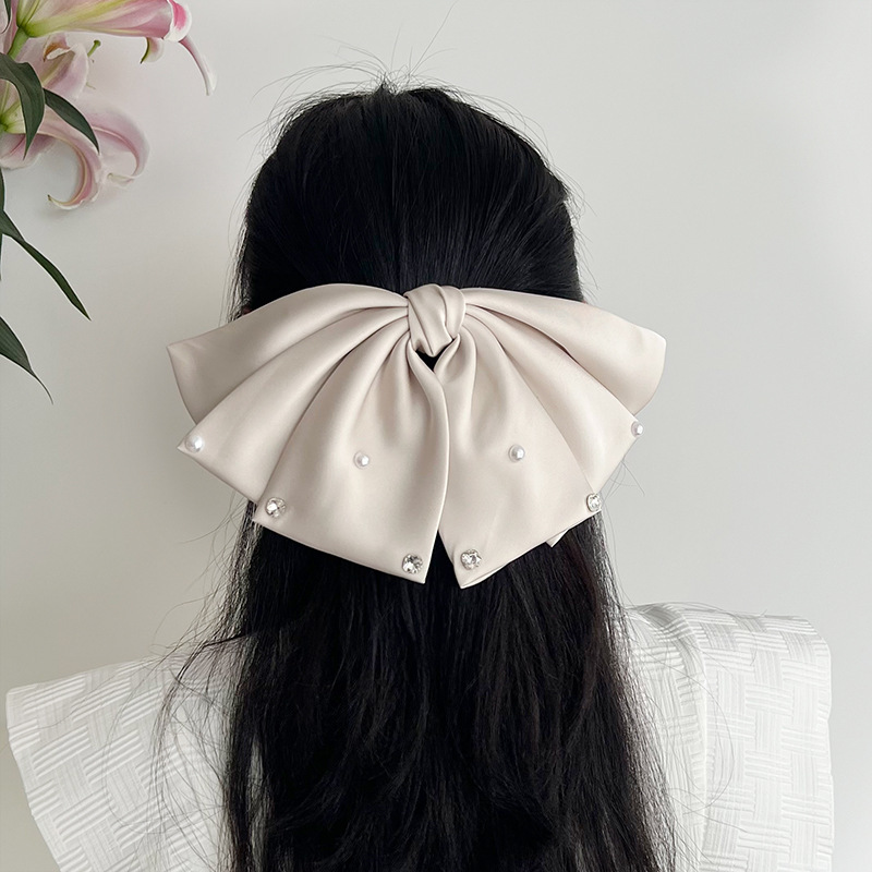 Beige Oversized Pearl Bow Barrettes