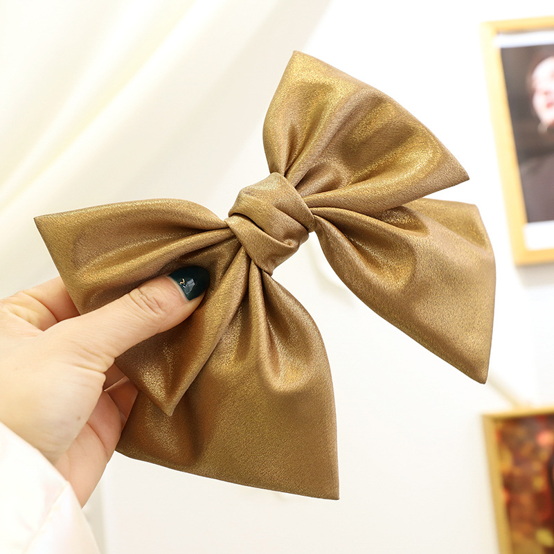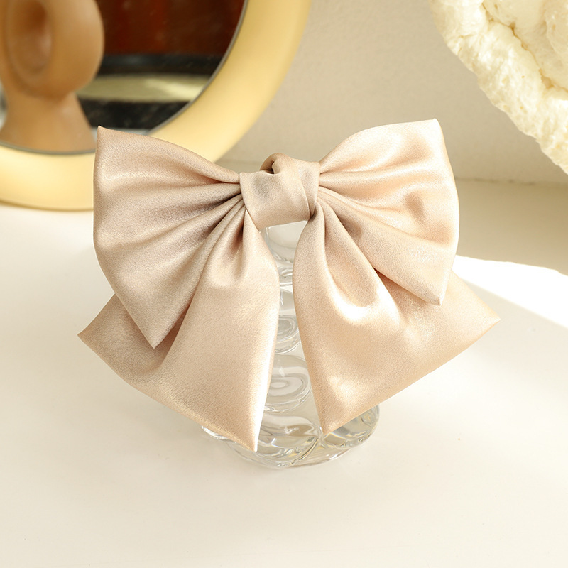 Beige Bright Silk Bow Spring Clip