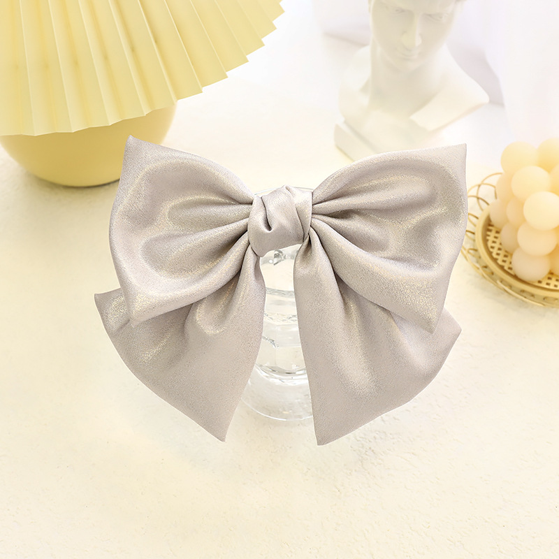 Light Gray Bright Silk Bow Spring Clip