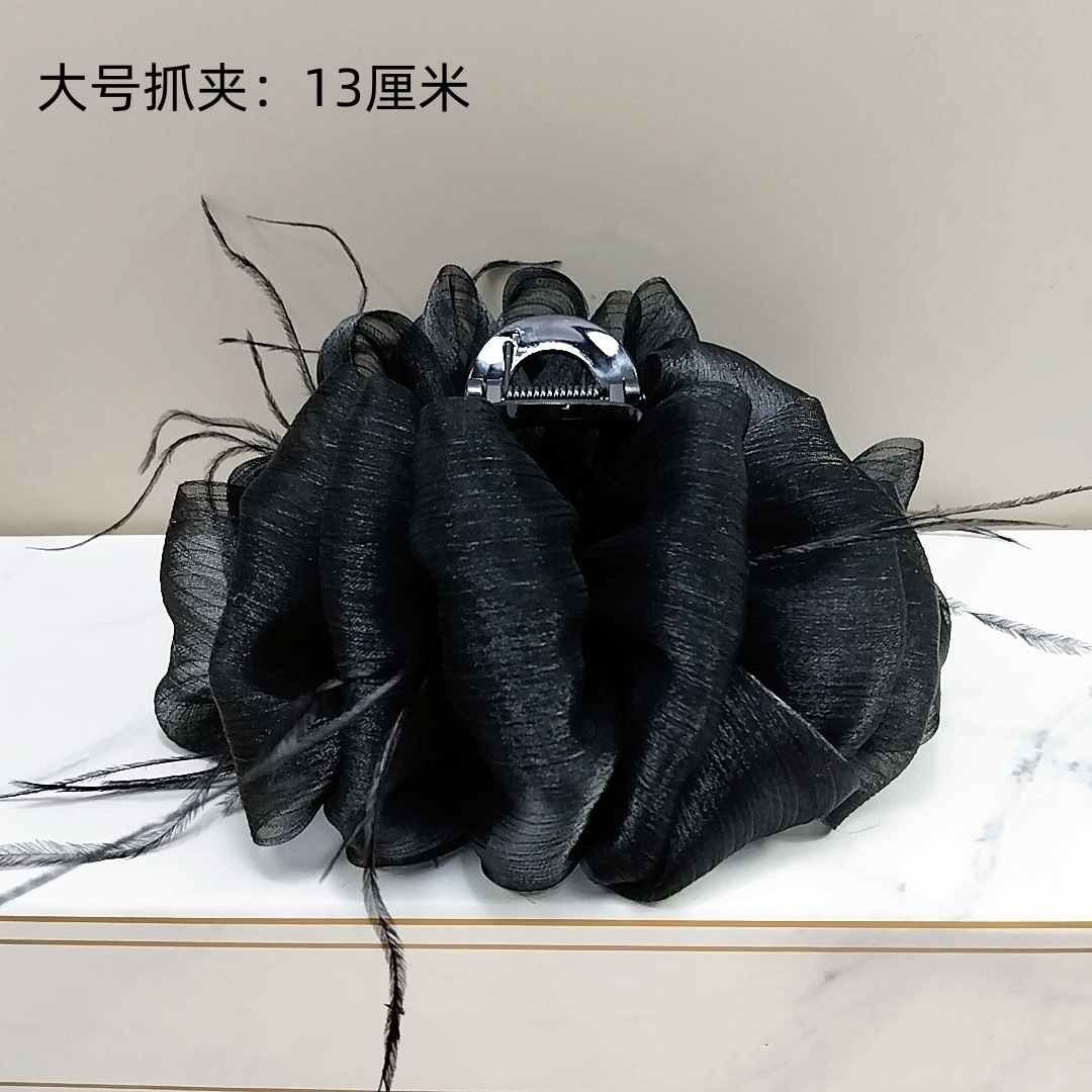 Large Cloud Bubble Gauze Claw Clip [White Diamond Straight Feather]