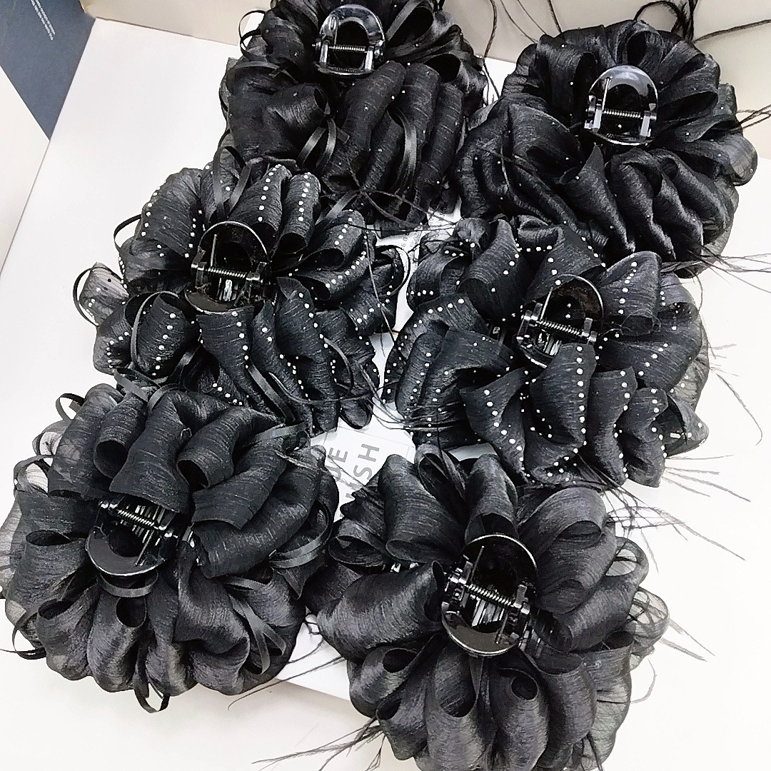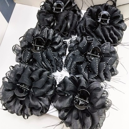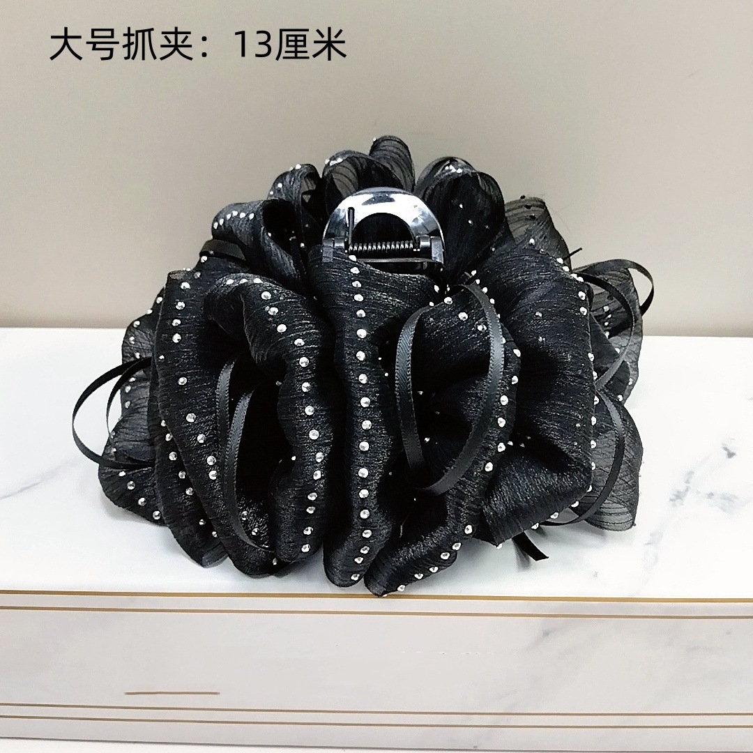 Large Cloud Bubble Gauze Hair Claw [Black Diamond Starry Ribbon]