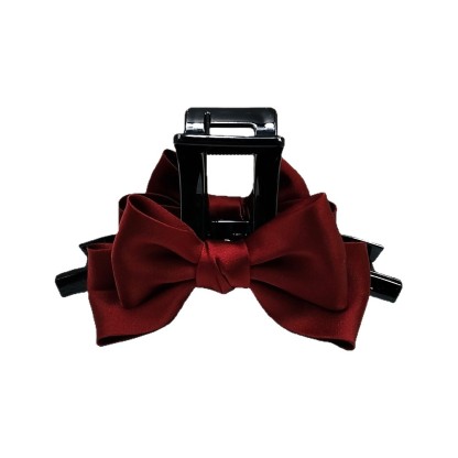 Satin Bow Square Head Clip [Burgundy]