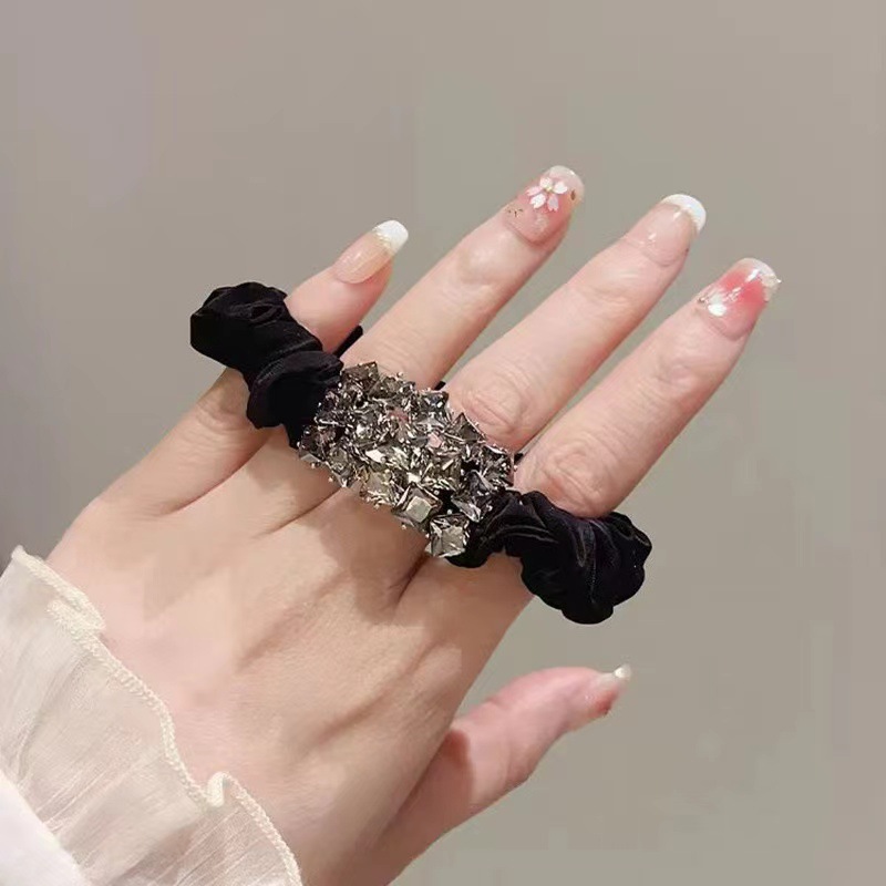 Rhinestone-Black Hair Ring