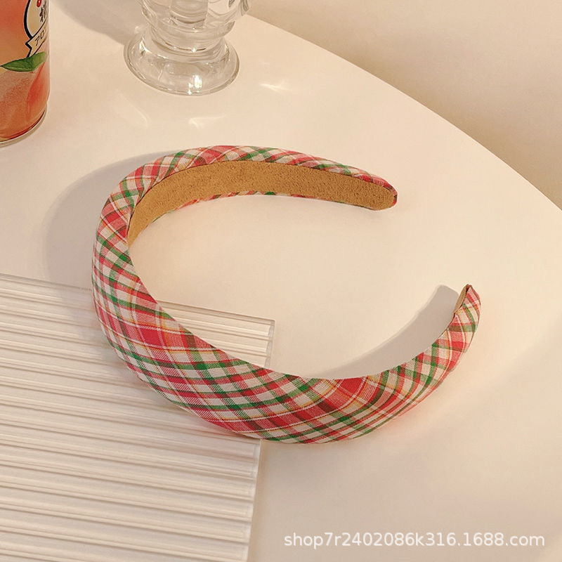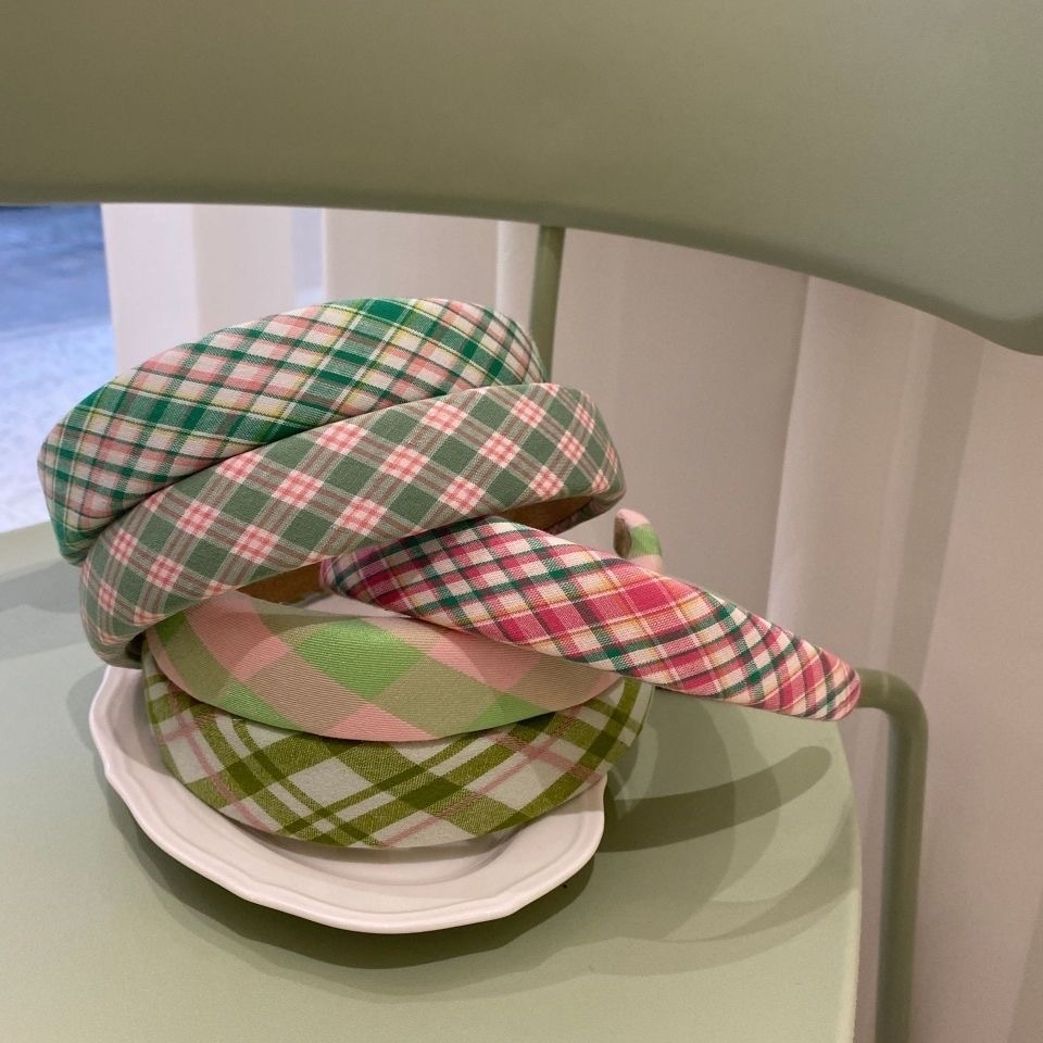 Spring Plaid Headband-Pink Green Large Plaid