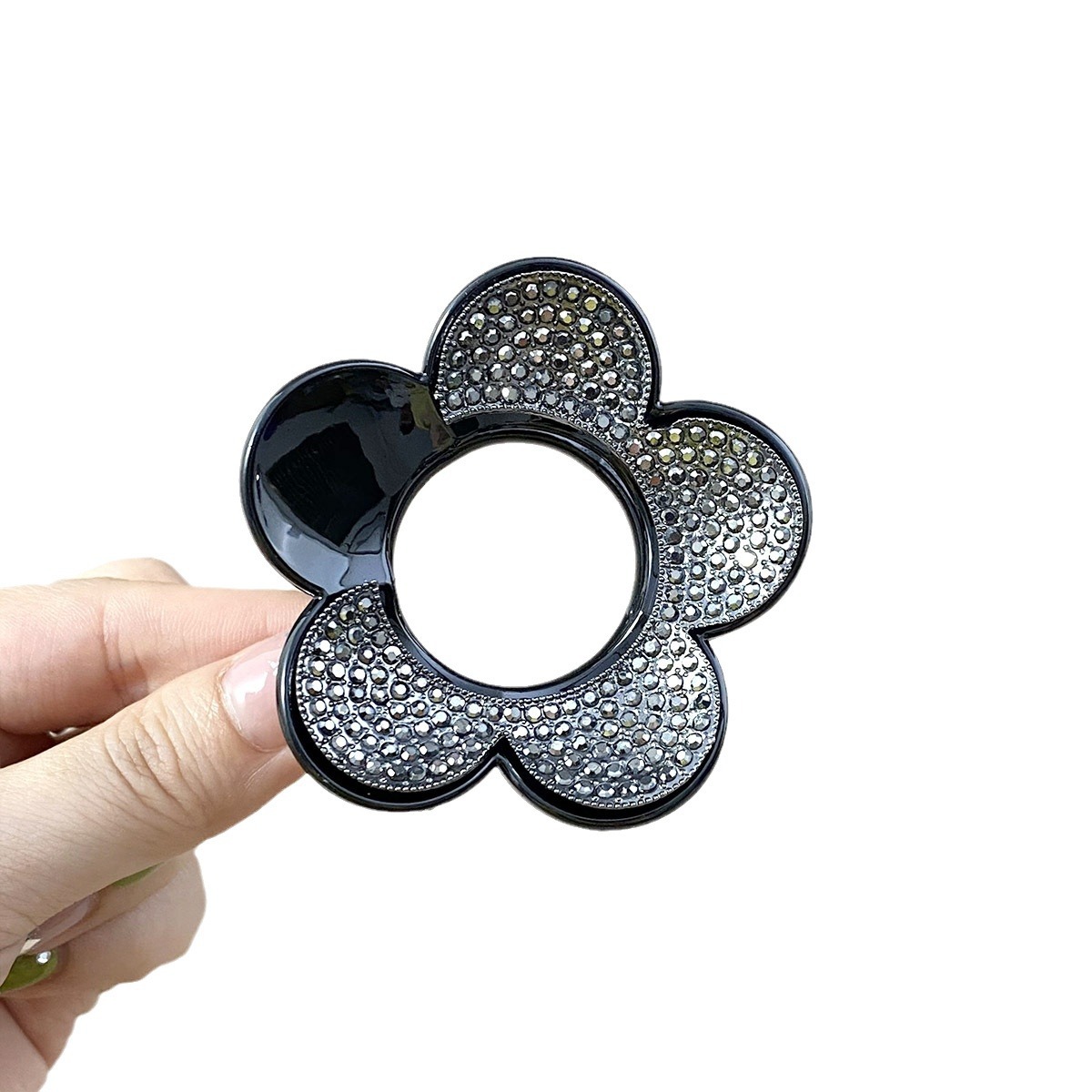 6cm Plum Blossom Large Claw Black Background White Diamond