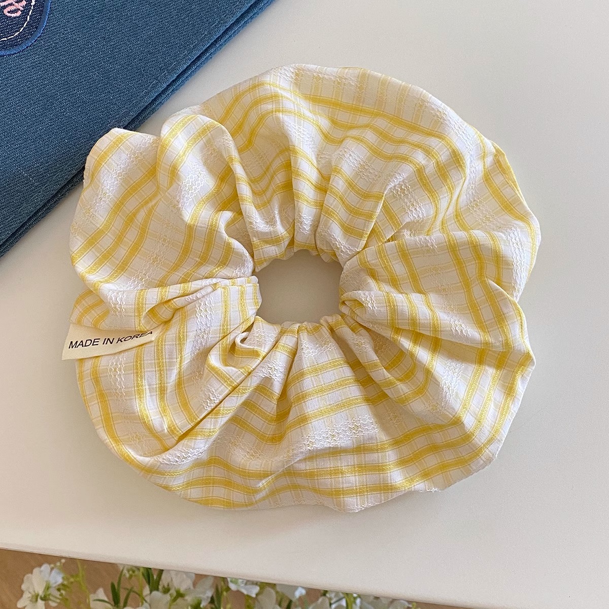 Yellow striped hair tie