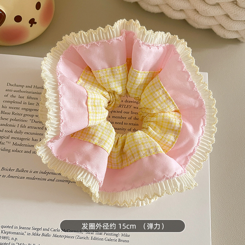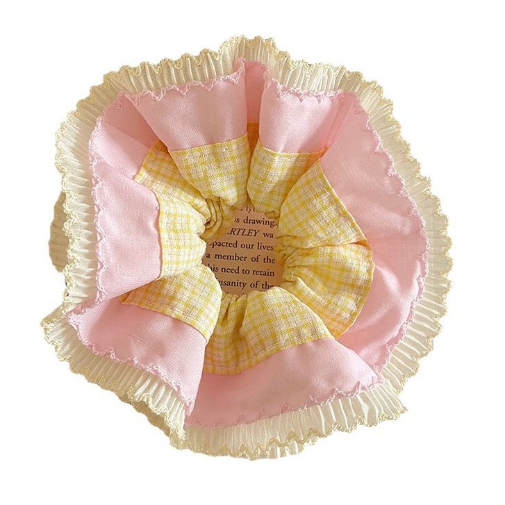 Yellow and Pink Plaid Hair Tie