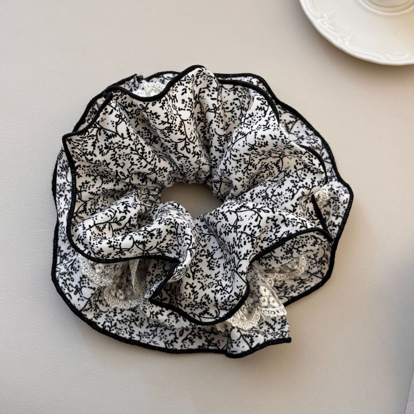 Beige floral hair tie