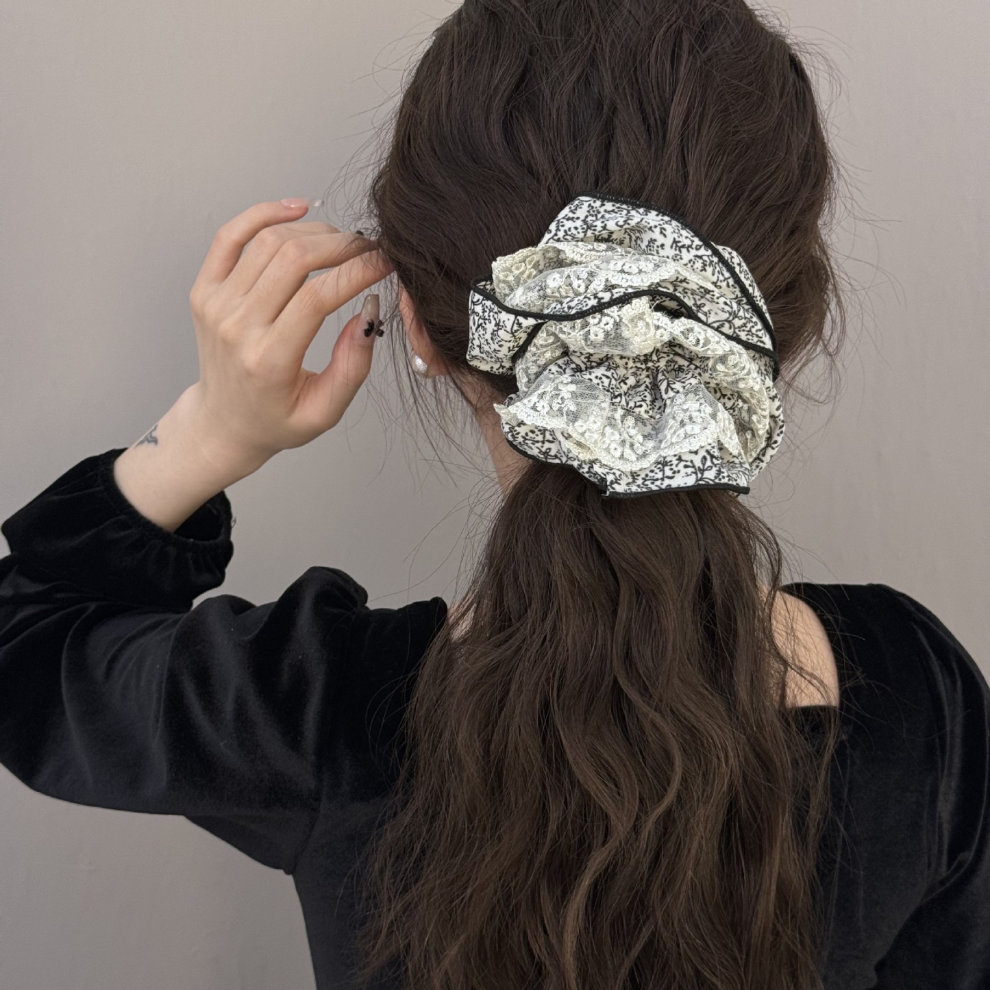 Black floral hair tie