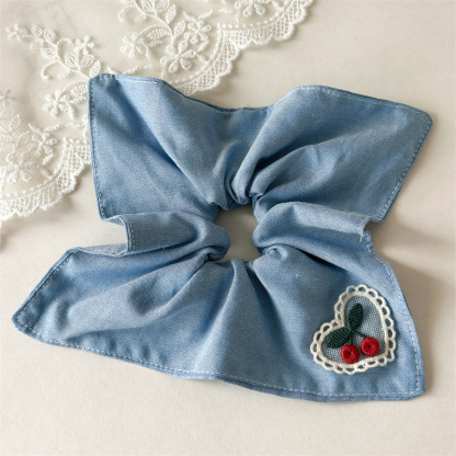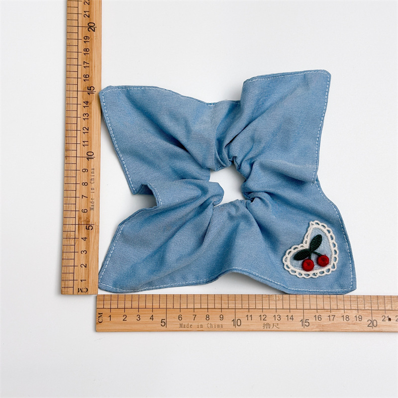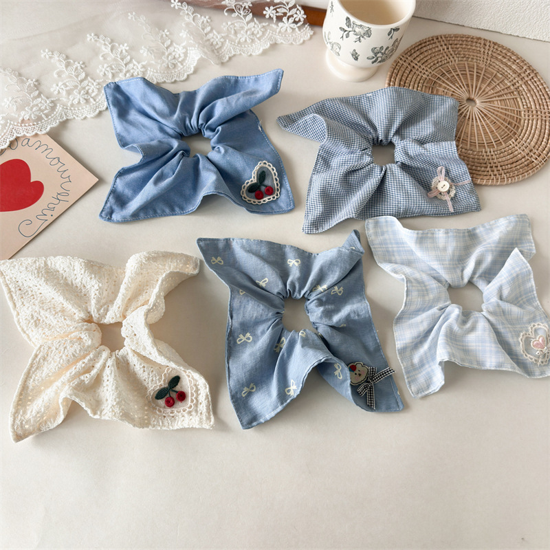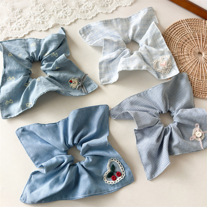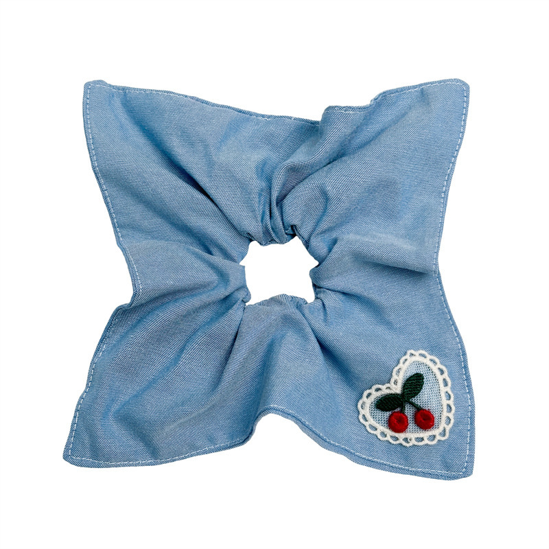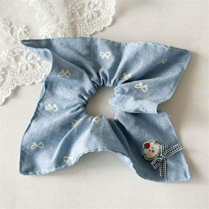 Blue bow square scarf hair tie