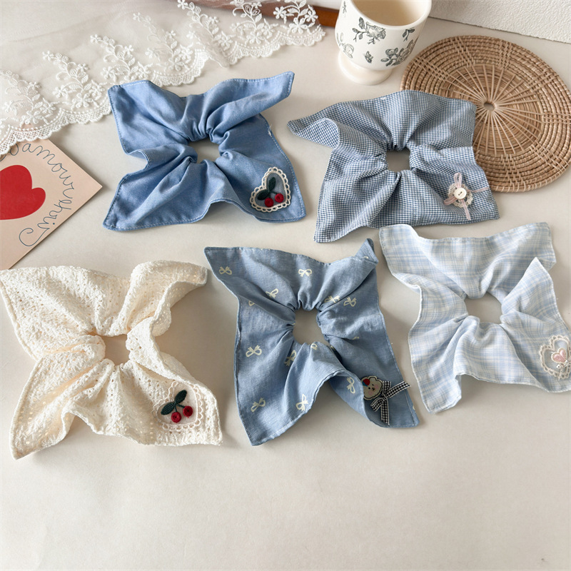 Plaid Heart Pattern Scarf Hair Tie