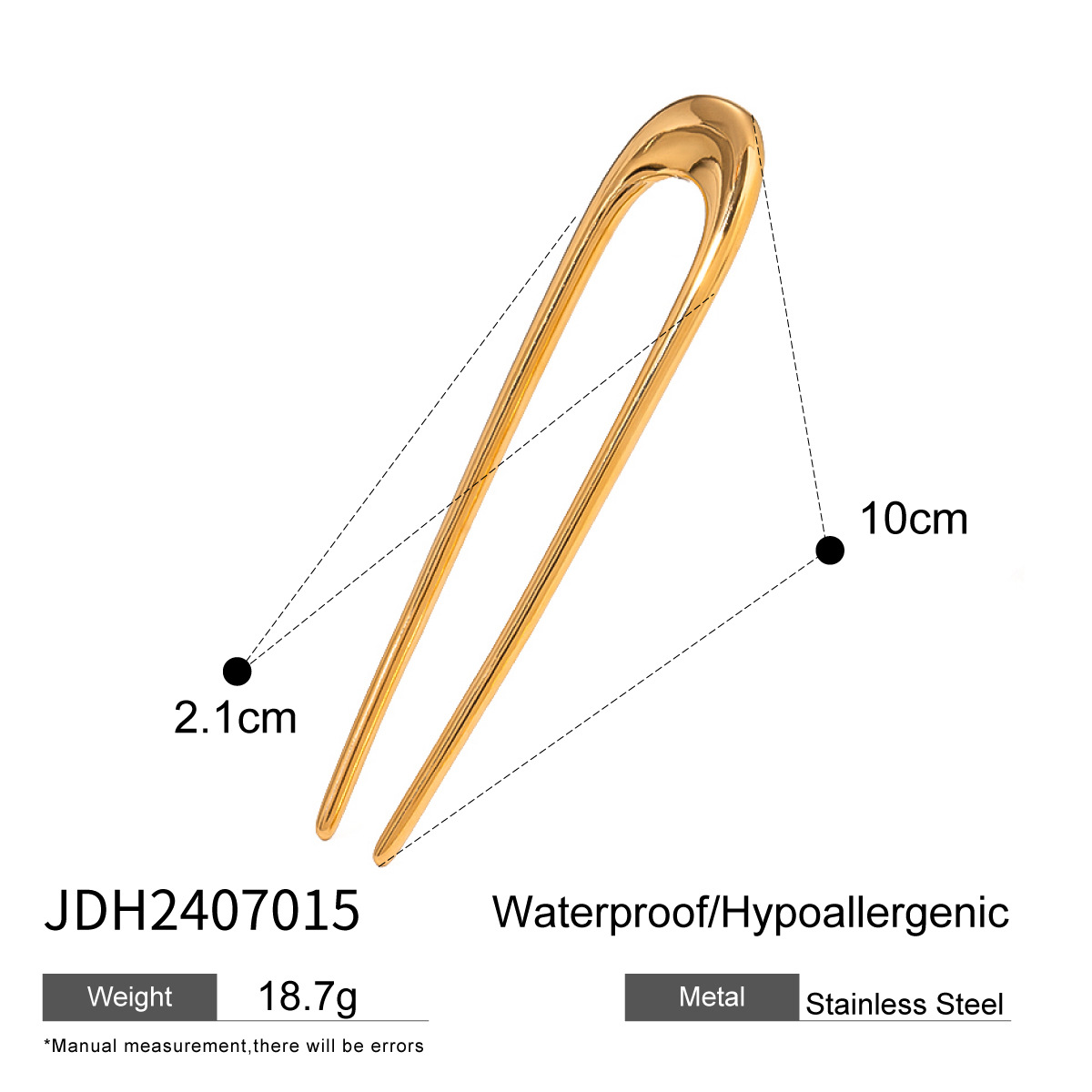 Stainless steel 18K gold hair pin