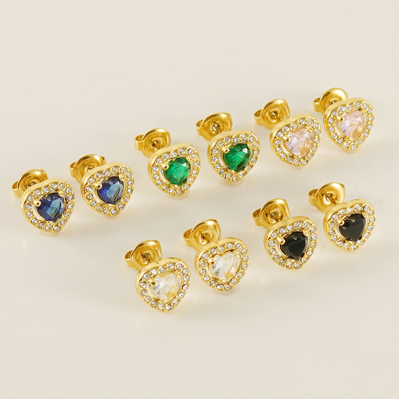 Zg569-Love Heart Stud Earrings [Black Diamond]]