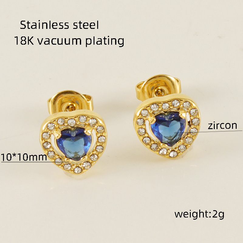 Zg569-Love Heart Stud Earrings [Blue Diamond]]