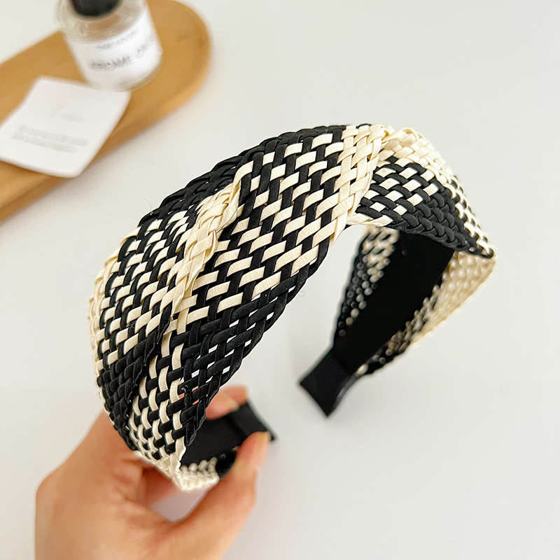 Black Beige Straw Crossed Headband