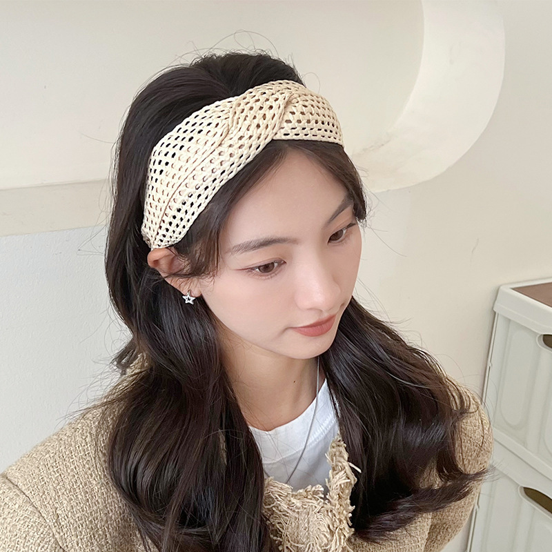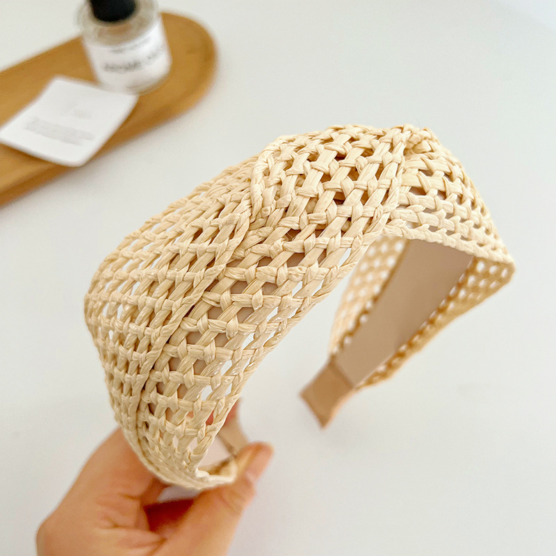 Beige Straw Crossed Headband