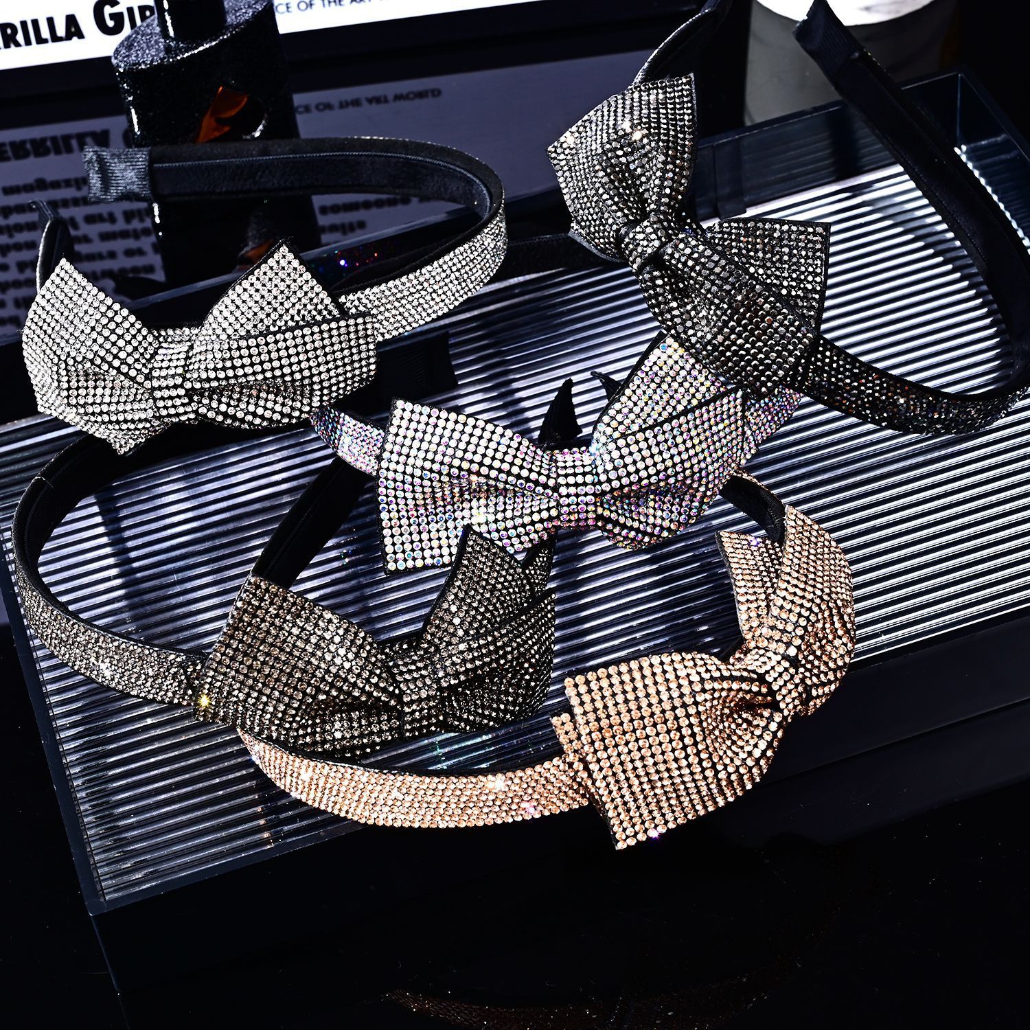 Butterfly Knot Cross Full Diamond Headband [Transparent Gray Diamond]