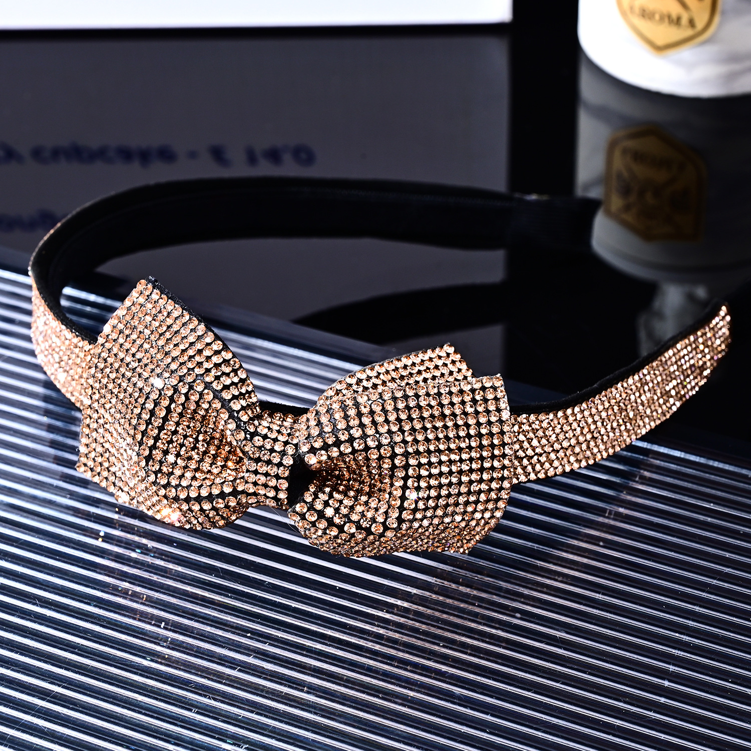 Butterfly Knot Cross Full Rhinestone Headband [Champagne Rhinestone]