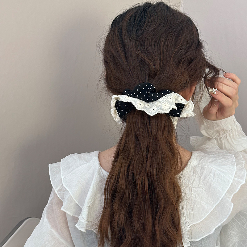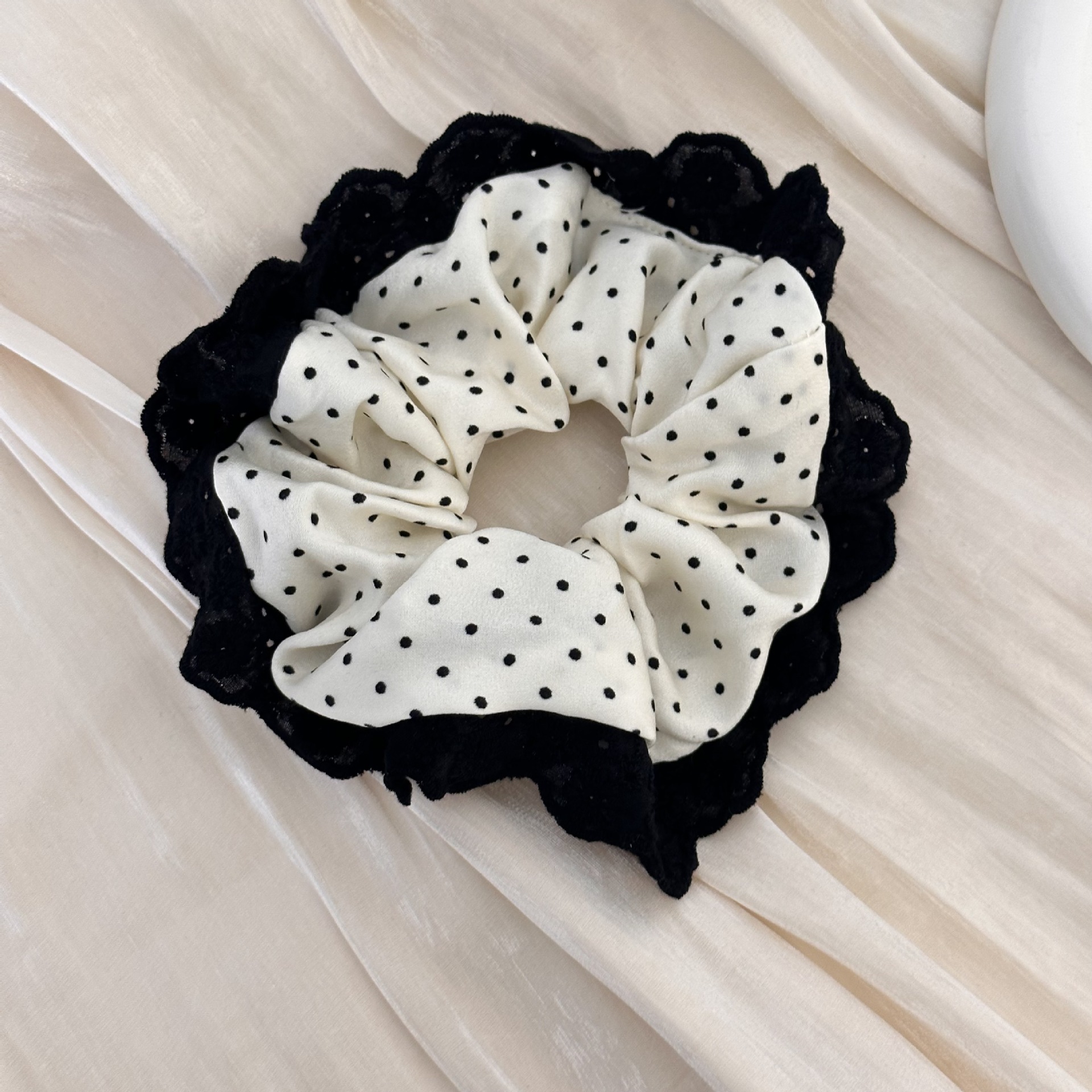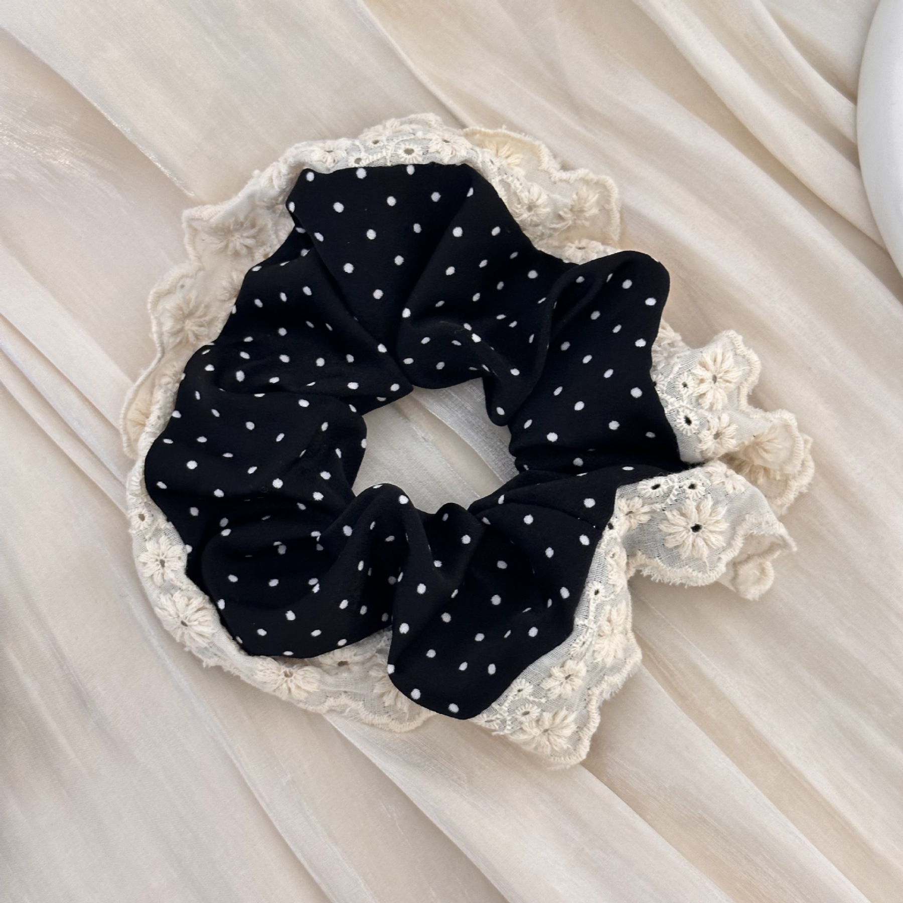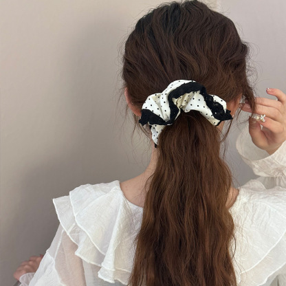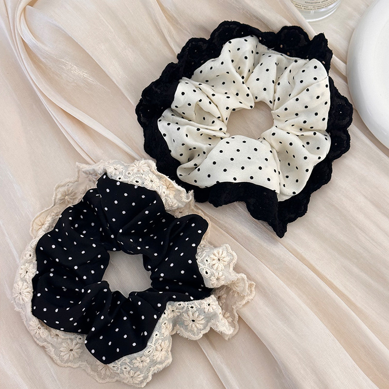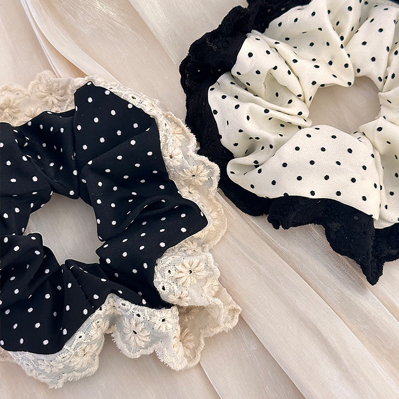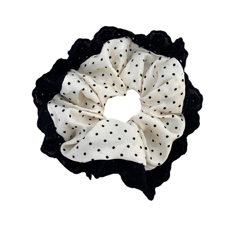 843# Black Polka Dot-White Lace Edge