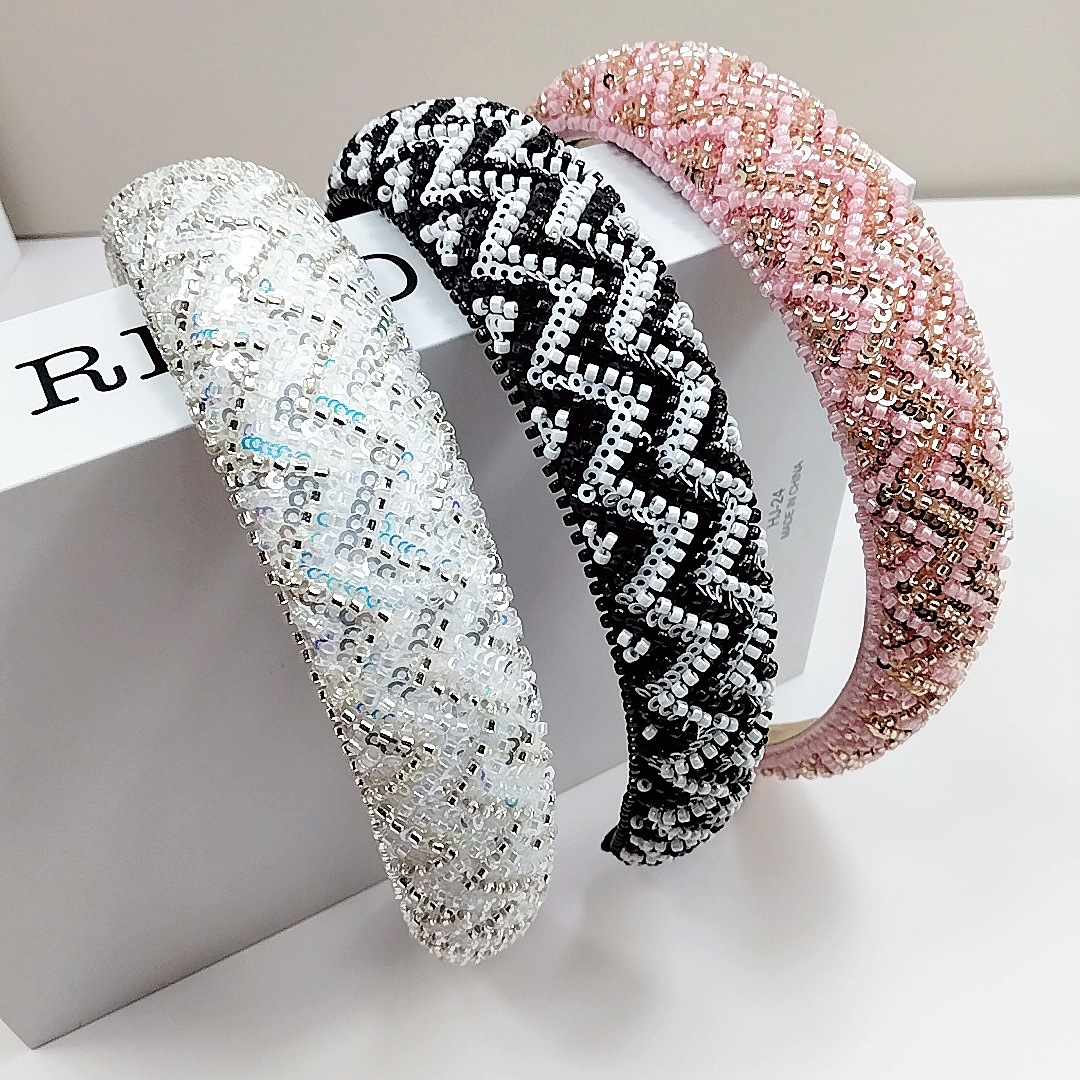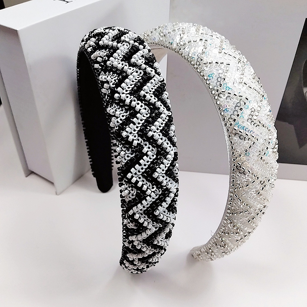 3cm Sequin Beaded Wave Style [Black and White]