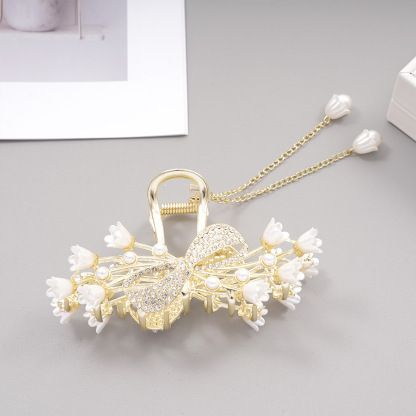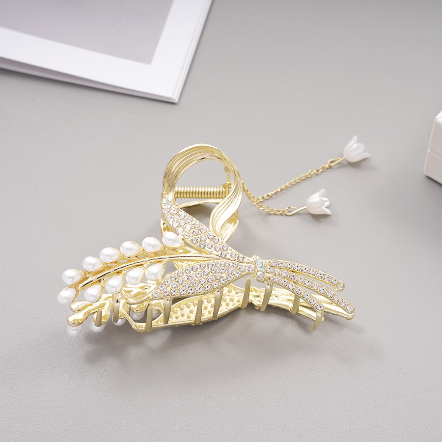 Full Diamond Wheat Pearl Barrettes Tassel