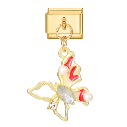 Gold Bottom Pendant-Red Butterfly