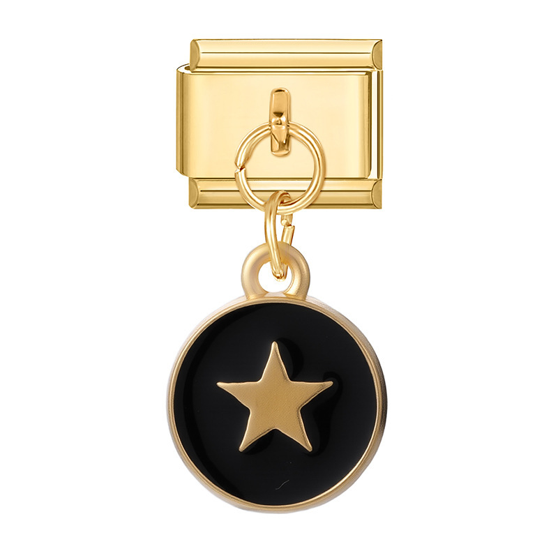 Gold Bottom Pendant-Black Five-Pointed Star