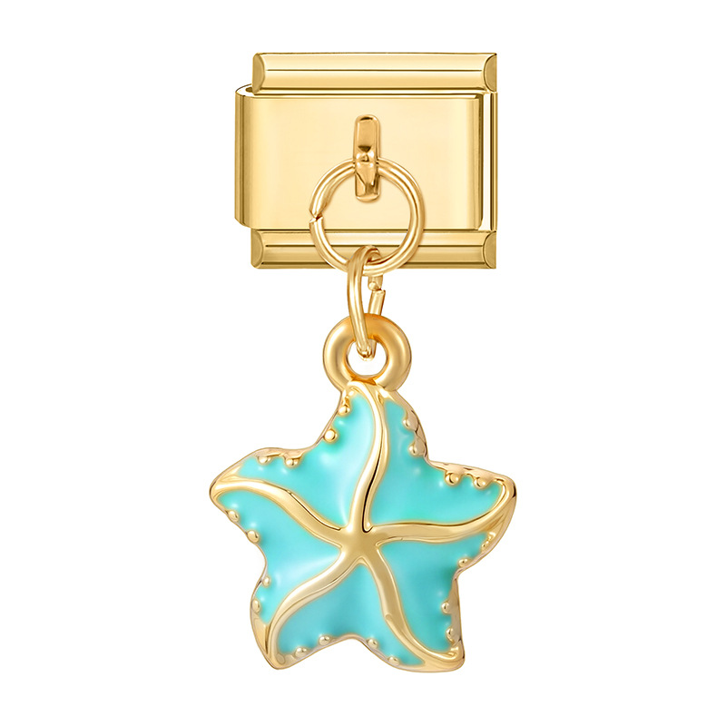 Gold Bottom Pendant-Blue Starfish