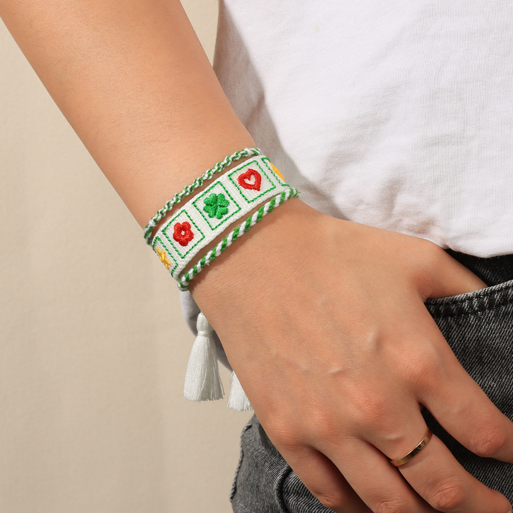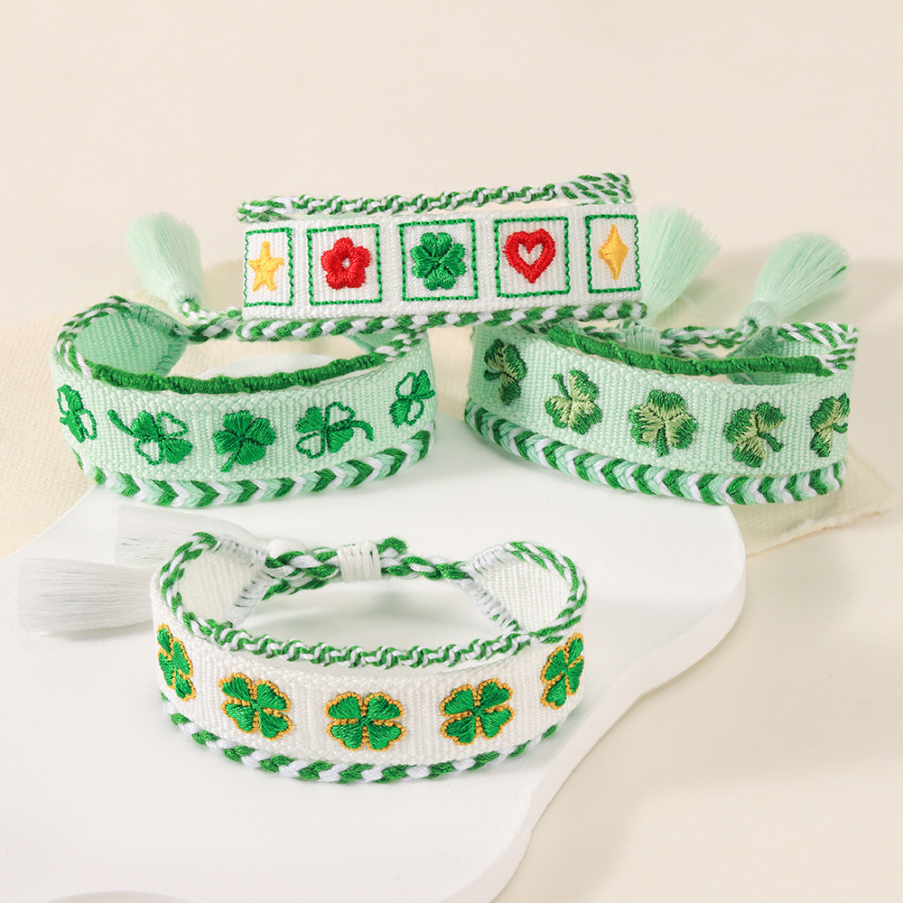 Four-leaf Clover Theme Embroidered Bracelet - 242B