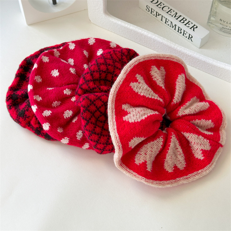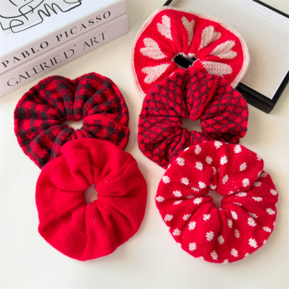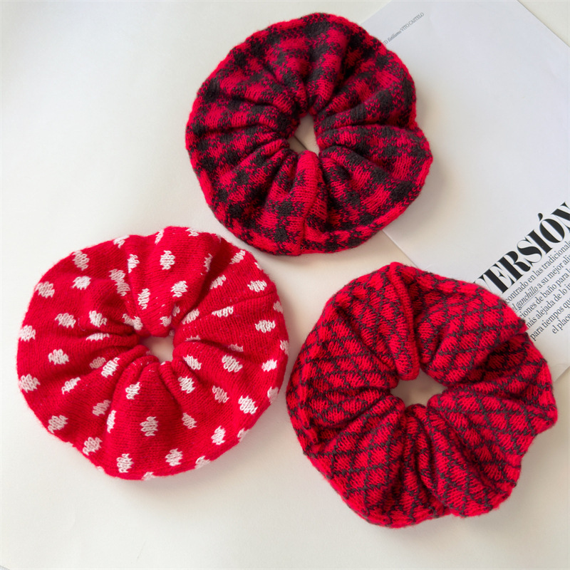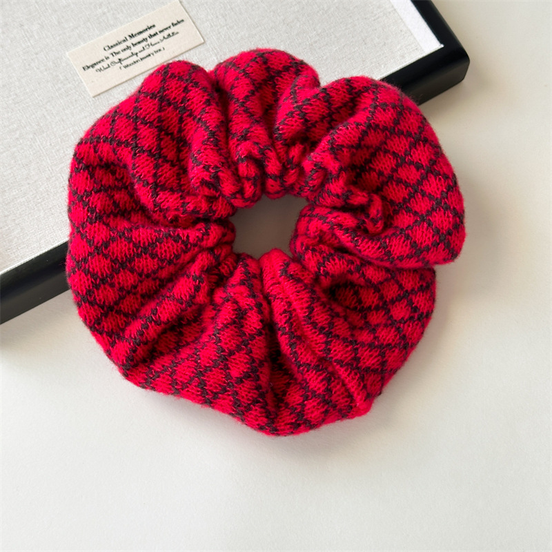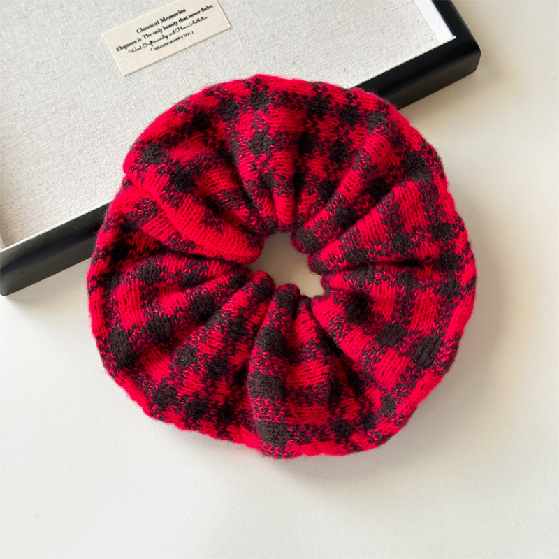 Red and Black Plaid Knitted Hair Ring