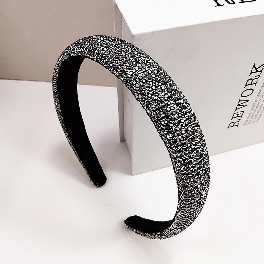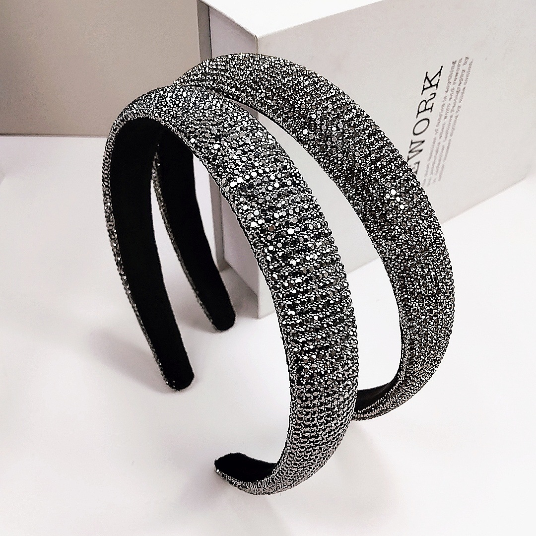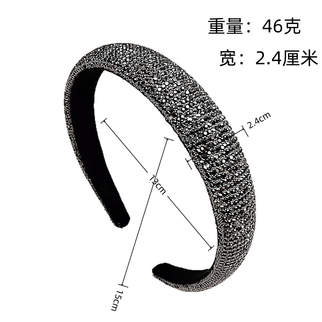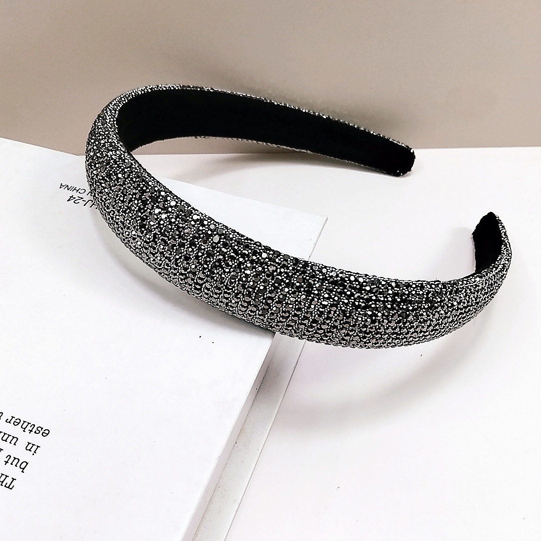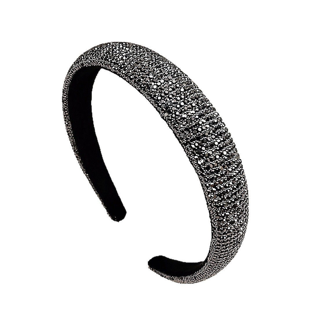 2.4cm Rhinestone Small Bead Full Wrap Headband [Mineral Gray Rhinestone]