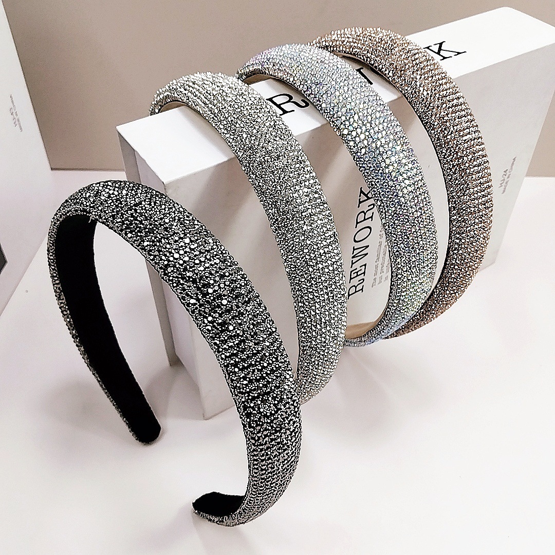 2.4cm Rhinestone Small Bead Full Wrap Headband [AB Rhinestone]