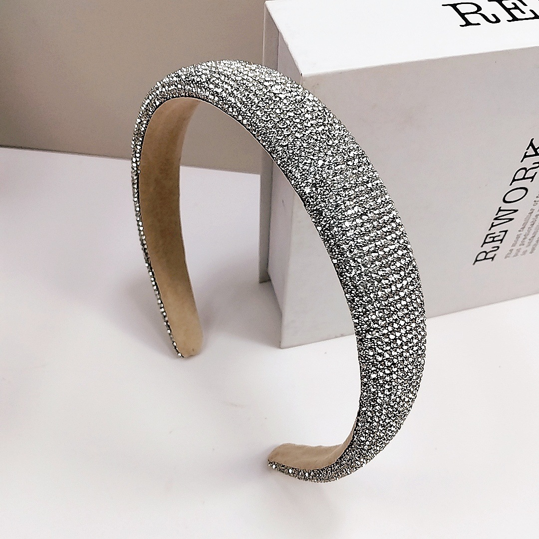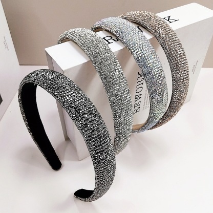 2.4cm Rhinestone Small Bead Full Headband [Transparent Gray Rhinestone]