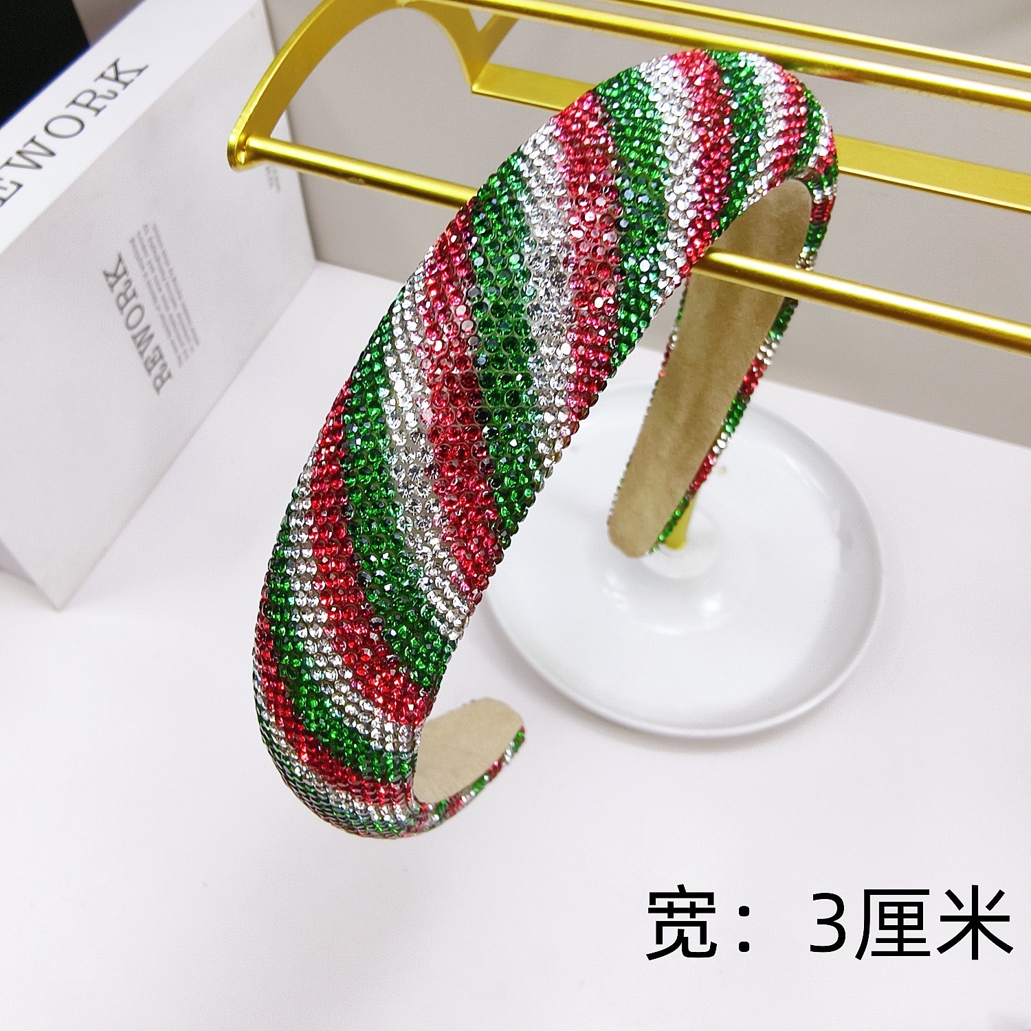 3cm Christmas Full Diamond Headband [Diagonal Stripe]