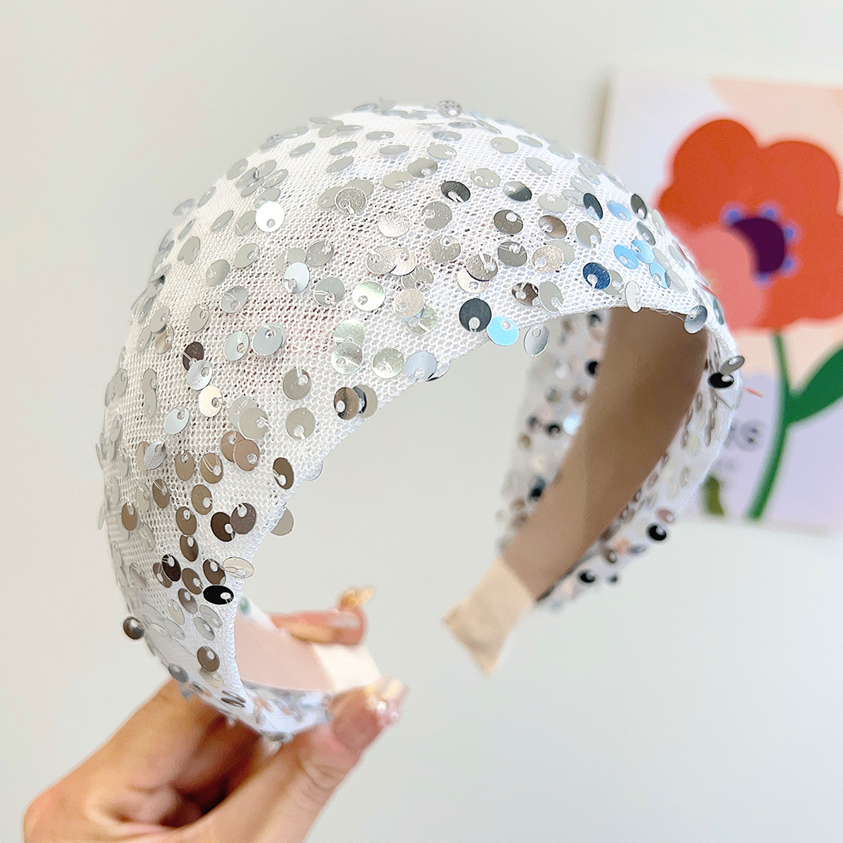 White + sequins + knotted headband