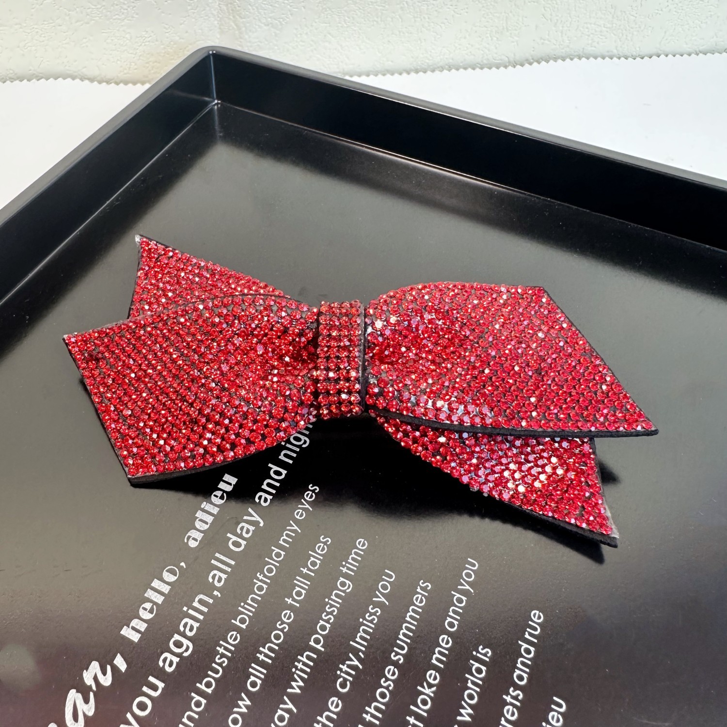 12cm Cross Grid Spring Clip Rhinestone [Red]