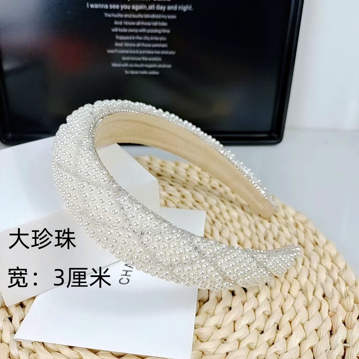 3cm Fine Beads Rhinestone Headband [Mesh Pearl Rhinestone]]