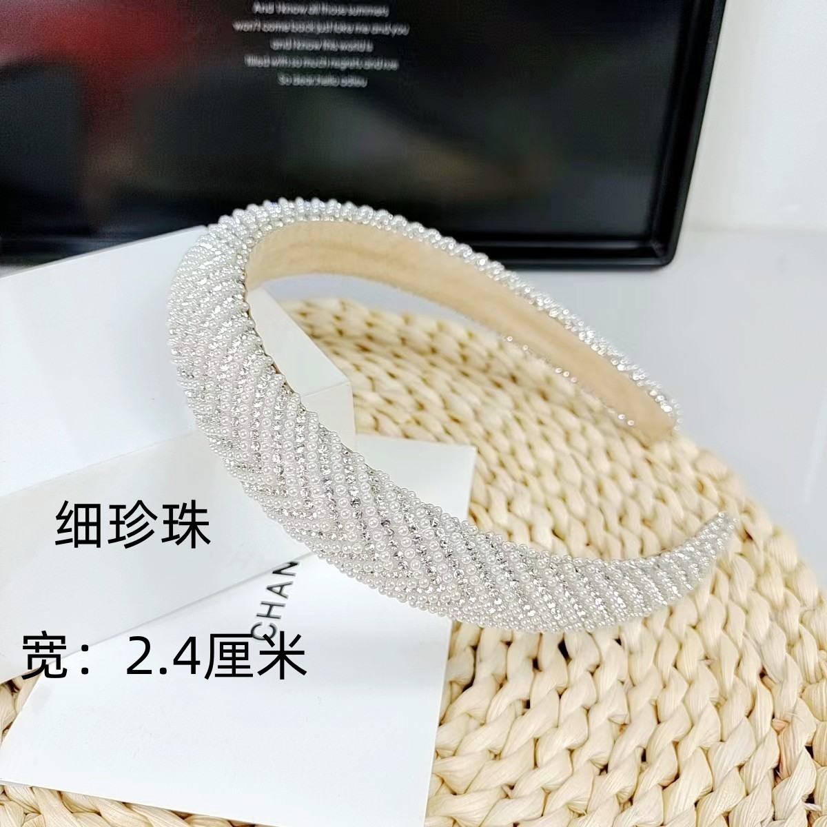 2.4 Fine Pearl Rhinestone Headband [Mesh Pearl Rhinestone]]